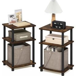 ホーム&キッチン・ペット・DIY 1920円!フリノ(Furinno) Justシリーズ サイドテーブル 3段 2個セット アンバーパイン/ブラック【日本正規輸入品】211087APBK 激安特価!