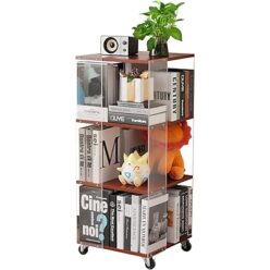 ホーム&キッチン・ペット・DIY 1665円!BTM 本棚 おしゃれ キャスター付き 回転絵本ラック 3段 隙間ラック リビングルーム 書斎 書籍 傘 鍵 小物 大容量収納 木製 組立簡単 収納 玄関棚