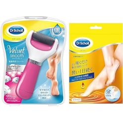 ドラッグストア・ビューティー 2160円!ドクターショール ベルベットスムーズ 電動角質リムーバー ダイヤモンド エキストラ(粗め) ピンク+足用集中保湿パック 3足パック