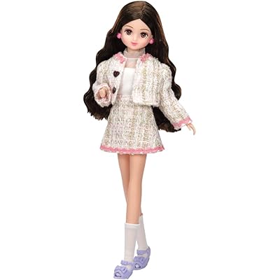 見た目に関しては、パステルピンクを基調にゴールドのアクセントが効いたツイードのセットアップスタイルがとてもおしゃれだと感じます。ジャケットのハート型ボタンや、ショート丈のタイトスカート、クルーソックスなど、細部まで今どきのトレンドが反映されている点も魅力です。着せ替え遊びがさらに楽しくなりそうなデザインですね。リカちゃんシリーズはドールのファッション性も高いですが、みおちゃんは特にスタイリッシュで大人っぽさも感じさせます。