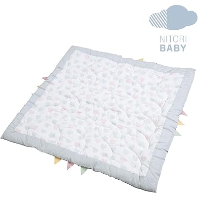 「ニトリ(NITORI) ベビーマット ハート PI 7910398」の商品説明を拝見し、まず赤ちゃんの快適さと安全性を第一に考えた設計が印象的だと感じました。表生地が天然素材のコットン100%で作られている点は、赤ちゃんの敏感な肌に直接触れるものだからこそ、とても安心材料だと思います。また、広々とした正方形のマットということで、赤ちゃんが寝返りをしたり、自由に動いてもマットから外れる心配が少なく、親御さんにとってもストレス軽減につながるのではないでしょうか。