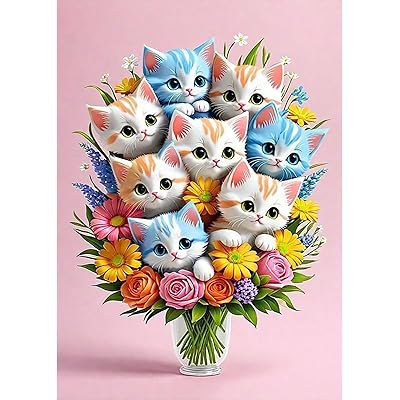 JISHSHAY ダイヤモンドアート 猫 可愛い 30x40cm ダイヤモンドアート キット ビーズアート 初心者 手芸キット 5D ダイヤモンドアート 花 絵 …