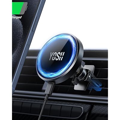 YOSH Magsafe対応 ワイヤレス車充電器 15W 急速充電 磁気吸着 置くだけでくっつく 360度回転 電波干渉なし 吸着力強化 エアコン吹き出し口 i …