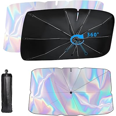 HZXTEC 車用サンシェード【反射性強化 虹色表面】傘型 折りたたみ式 サンシェード 車 フロント カーシェード 日除け 遮光 遮熱 UVカット 紫外線遮蔽 …