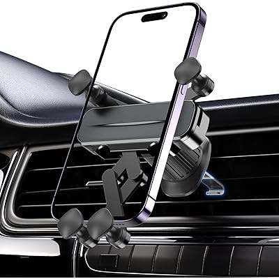 スマホホルダー 車 エアコン吹き出し口 【金属製フック+予備クリップ+日本語説明書】 NIOULEL 車載ホルダー 重力連動 置くだけ 自動ロック 片手操作 縦 …