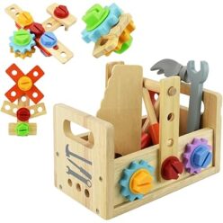 ベビー・おもちゃ・ホビー 828円!【保育士推奨】 木製組み立てセット 大工ごっこ 知育玩具 DIY 釘打ち ネジ回し ナット締め ボックス付き