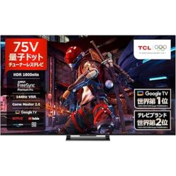 家電・カメラ・AV機器 94000円!TCL 75V型 テレビ チューナーレス 4K液晶 144Hz 倍速 量子ドット ゲーミング 75C745 地上波受信なし freesync premium p …