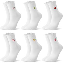 服・シューズ・バッグ ・腕時計 299円![girldate] 靴下 レディース 6足セット フリル クルーソックス フルーツ柄刺繍 クルーソックス 綿 可愛い 蒸れない 通気性 23-26cm