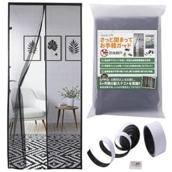 ホーム&キッチン・ペット・DIY 380円!ドア用 玄関 網戸 後付け マグネット 開閉式 虫 対策 ペット 対応 静音仕様 ドア 複数サイズ取扱い ベランダ 利用も可 蚊 ハエ 蜂 対策 (黒, 76× …