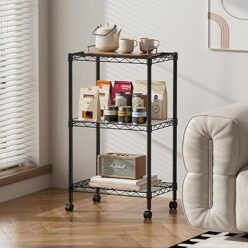 ホーム&キッチン・ペット・DIY 1599円!SVOHZAV スチールラック 3段 キャスター付き ワゴン 高さ調整自由 収納棚 移動便利 多機能収納ラック キッチンラック スリム 隙間収納 (ブラック, …