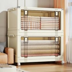 ホーム&キッチン・ペット・DIY 1380円!Vinnatsu収納ボックス 折りたたみコンテナ 2面開閉式 収納ケース 二段ボックス 半透明扉付き キャスター付き 厚み強化 組立簡単 収納ケース 家庭用 車 …
