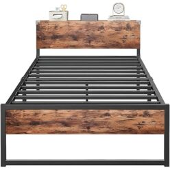 ホーム&キッチン・ペット・DIY 6299円!HUANUO(ファーノー) シングルベッドフレーム 宮棚付き スチール製 パイプベッド 組み立て簡単 耐荷重300kg 静音設計 ベッド下収納30cm 幅97× …