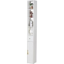 ホーム&キッチン・ペット・DIY 2272円!VECELO トイレ収納 トイレラック 幅20X奥行20X高さ170cm スリム 扉付き 引き出し付き 防水 防湿 取っ手付き 組立簡単 ペーパー収納 省スペー …