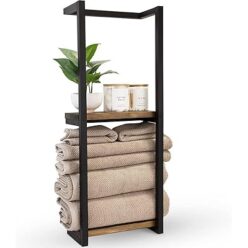 ホーム&キッチン・ペット・DIY 1225円!壁掛けタオルラック マットブラック 2段バスタオル収納 モダン バスルーム用 棚付き ロールタオル用 ウォールラック (28.5×14×77cm) 簡単設置 お …