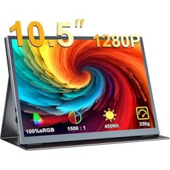 パソコン・オフィス用品 8184円!EVICIV モバイルモニター 10.5インチ ポータブルディスプレイ 超軽量250g 高輝度450nits 100%sRGB広色域 画像比自動適合 FHD12 …