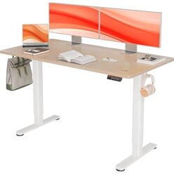 パソコン・オフィス用品 5357円!Claiks 昇降デスク 初心者向け スタンディングデスク 電動 パソコンデスク 昇降式 オフィスデスク 幅100cm*奥行き60cm ホワイトフレーム/ナチュ …