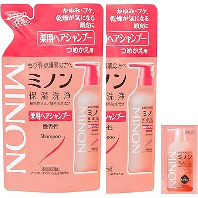 ミノン薬用ヘアシャンプー つめかえ用 380mL 2個セット サンプル付き ヘアシャンプー 敏感肌 かゆみ フケ 保湿 乾燥対策 弱酸性 低 …