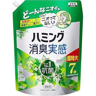 ハミング 【大容量】消臭実感 柔軟剤 つめこみ洗いも、部屋干しも、無敵消臭! 内No.1抗菌 リフレッシュグリーンの香り つめかえ用 2,600ml