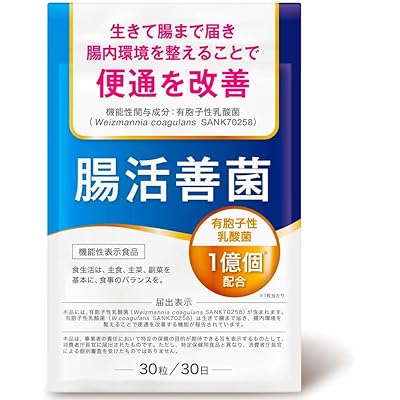 「腸活善菌 便通改善 乳酸菌 サプリ」は、腸内環境の改善や便通のサポートを目的としたサプリメントとして設計されている印象を受けます。1億個もの乳酸菌が配合されている点や、有胞子性乳酸菌(Weizmannia coagulans SANK70258)が含まれていることが特徴的です。有胞子性乳酸菌は、胃酸などの影響を受けにくく、生きたまま腸まで届くことが強調されていますので、より効果的に腸内環境へ働きかけられるのではないかと期待されます。