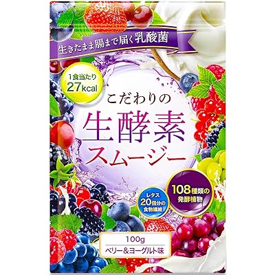 336円!DUEN こだわりの生酵素スムージー 置き換え ダイエット 108種類の生酵素 食物繊維 乳酸菌 100g (ベリー&ヨーグルト)