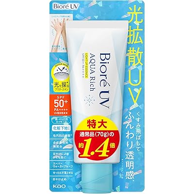 商品説明を読んで、Bioré ビオレ UV アクアリッチ ライトアップ エッセンスは、日焼け止めとしての基本的な機能だけでなく、肌の透明感や美しさにもこだわった製品だと感じました。SPF50+・PA++++という高い紫外線カット効果があり、日常使いはもちろん、屋外で長時間過ごす際でもしっかりと肌を守ってくれそうです。