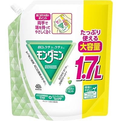 モンダミン マウスウォッシュ 詰め替え用(ペパーミント)は、口臭ケアをはじめ、お口の清潔をしっかりサポートしてくれる商品だという印象を受けました。1.7Lの大容量パウチは、家族みんなで使う方や、日常的にマウスウォッシュを使う方にとって、コストパフォーマンスが高く、とても便利だと思います。