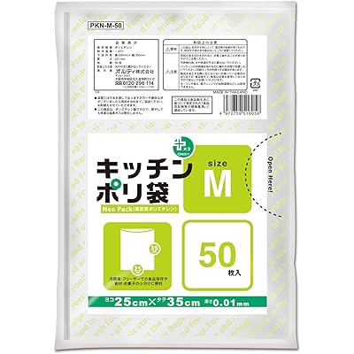 オルディ キッチンポリ袋 半透明 M 50枚入 食品 保存袋 冷蔵庫 フリーザー プラスプラス PKN-M-50