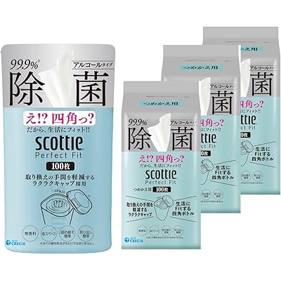 スコッティパーフェクトフィット ウェットティシュー除菌アルコール100枚ミストブルー 本体1+詰替え用3