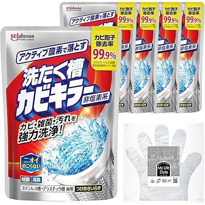 また、塩素系ではなく、酸素系(過炭酸ナトリウム)ということで、いわゆる「ツンとした塩素臭」が残らない点も好印象です。洗濯機内部の除菌や消臭もしっかりできるようなので、衛生面が気になる家庭でも安心して使えそうですね。5本入りのまとめ買いパックで、定期的に洗濯槽を掃除したい人にとってコスパが良いのも嬉しいポイントだと思います。さらに、お掃除手袋が付属しているのは、実際に掃除をするときの配慮が感じられ、利用者目線で設計されていると感じます。