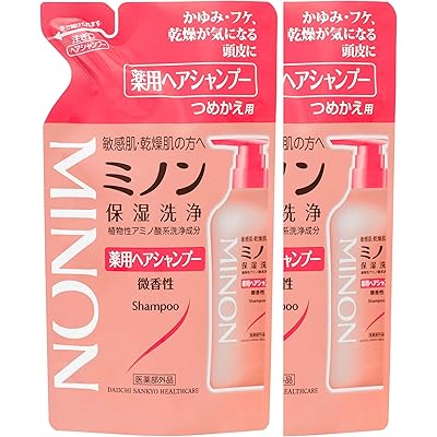 ミノン薬用ヘアシャンプー つめかえ用 380mL 2個セット サンプル付き ヘアシャンプー 敏感肌 かゆみ フケ 保湿 乾燥対策 弱酸性 低刺激性 【医薬部外品 …