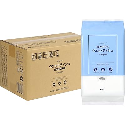 by Amazon 純水99% ウェットティッシュ メッシュタイプ 60枚入×20個 (1200枚) 日本製 パラベンフリー