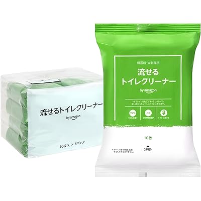 「by Amazon 流せるトイレクリーナー 無香料 大判厚手 10枚×8個」という商品について、説明文をもとに感じた印象や感想を述べます。