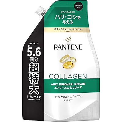 「パンテーン シャンプー 1.7L [5.6個分] 詰め替え 超特大 エアリーふんわりリペア」は、細くてぺたんこになりやすい髪質の方に特におすすめの商品だと感じました。年齢を重ねるごとに髪のハリやコシが失われやすく、ボリュームダウンが気になる方も多いと思いますが、このシャンプーはそのような悩みにアプローチしてくれる点が魅力的です。