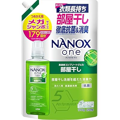 NANOX one ナノックスワン 部屋干し 詰替メガジャンボ1790g フォレストグリーンの説明を読んで、非常に多機能で使い勝手の良さそうな洗濯洗剤だという印象を受けました。特に「部屋干し洗剤を超えた消臭力」や、「頑固なニオイを無臭化洗浄」というフレーズは、部屋干しが多い家庭や梅雨時に洗濯物の臭いが気になる方にとって、頼もしいポイントだと感じます。汗臭やタオルの雑菌臭、枕カバーの加齢臭など、日常で頻繁に直面するニオイへの対策としても強力そうです。