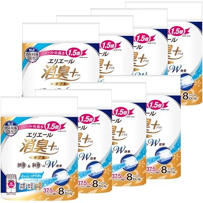 エリエール トイレットペーパー 消臭プラス 1.5倍巻き 37.5m×64ロール(8ロール×8パック) ダブル パルプ100% フレッシュクリアの香り 【ケース …