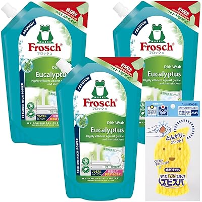 フロッシュ食器用洗剤ユーカリつめかえ用800mlプレミアム3本セット+ズビズバスポンジ付き