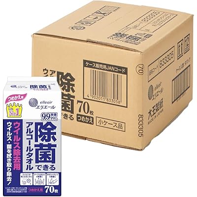 エリエール 除菌できるアルコールタオル ウイルス除去用 ウェットティッシュ ボトル つめかえ 630枚(70枚×9パック) アルコールタイプ 【ハーフケース】 …