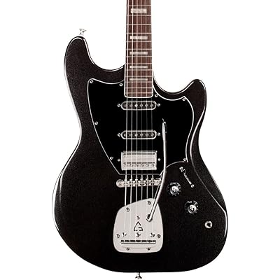 Guildの「SURFLINER DELUXE BLK」は、ビンテージ感とモダンな要素を融合させたエレキギターとして非常に魅力的に感じます。まず、1950年代から続くGuildならではのクラシカルなデザインに、現代的な仕様が加わっている点が印象的です。ブラックメタリックのカラーリングも個性的で、ライブやステージでしっかりと存在感を発揮しそうです。