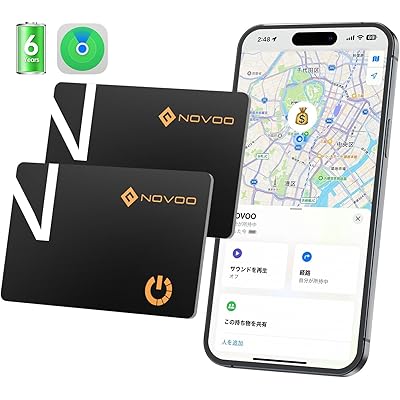 NOVOO エアタグ カード 2個入り 【最大10年長持ち・6年充電電池交換不要・0.16cm超薄・IP68防水・MFi認証品】スマートタグ カード エアカード …
