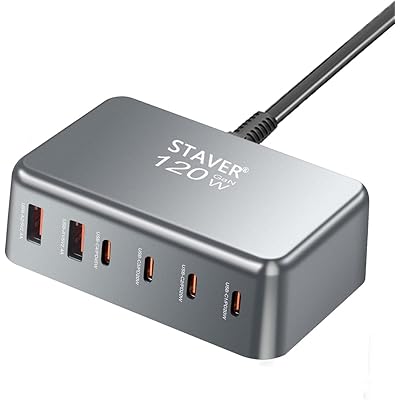 この「120W GaNFastⅢ 6ポート充電器」は、現代の多様なデバイス利用者に非常に魅力的な製品だと感じました。まず、最大120Wという高出力と6台同時充電に対応している点が大きな特徴です。USB-Cポートが4つ、USB-Aポートが2つという構成により、スマートフォンやタブレットはもちろん、ノートパソコンやゲーム機など、幅広いデバイスを1台の充電器ですっきりとまとめられるのは、日常的に複数ガジェットを使う方には非常に便利です。