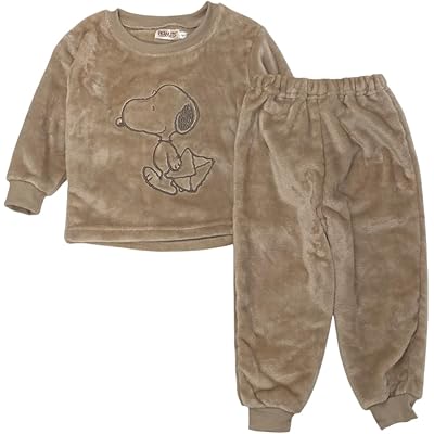 [タキヒヨー] パジャマセット スヌーピー キッズパジャマ ミンクフリース ふわもこ 刺繍 ルームウェア ユニセックス 男児 女児 ボーイズ ガールズ 110サ …