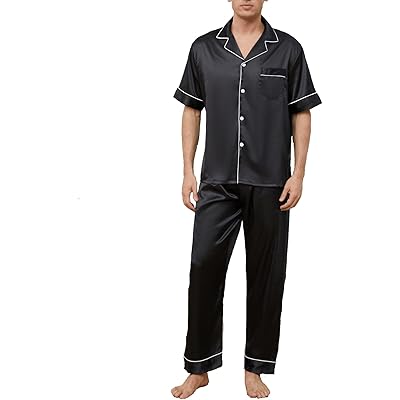 [mumisuto] パジャマ メンズ 半袖 男性用シミュレーションシルク半袖長ズボンセットメンズ 夏 ルームウェアパジャマ 吸湿性 通気性 寝間着 L Reg …