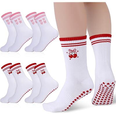[girldate] ヨガソックス 4足セット リボン チェリー柄 ピラティス 靴下 滑り止め 通気性 耐久性 防臭 四季用 レディース ピラティスソックス ス …