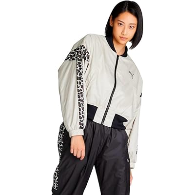 また、首元と裾部分がリブ素材になっているため、羽織るだけでシルエットにメリハリがつき、スタイリッシュに決まるのが嬉しいポイントです。両袖のワンラインもシンプルで上品な印象を与えつつ、PUMAらしいスポーティーさもさりげなく表現されています。左胸にはレオパード柄のCAT LOGOがデザインされていて、シンプルな中にもアクセントが効いており、クールでかっこいい大人の女性像をイメージできそうです。