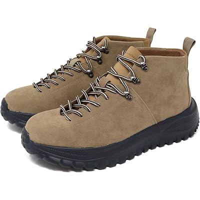 この「メンズ 6430レースアップ アウトドアブーツ」は、ハイキングブーツの機能性を活かしつつ、タウンユースにもマッチするデザイン性を兼ね備えている点が印象的です。まず、デザイン面ではクラシックなハイキングブーツのシルエットを採用しながらも、無駄のないプレーントゥや上質なスエード素材を取り入れているため、アウトドアシーンのみならず、普段の街歩きやカジュアルなファッションにも自然に溶け込むのが魅力だと感じました。
