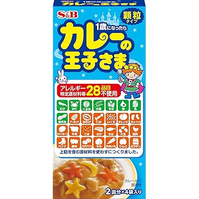 この商品は、S&Bの「王子さまシリーズ カレーの王子さま 顆粒 60g×4個」です。商品名から察するに、子供向けに開発された商品のようです。しかし、その味は野菜と豚肉のおいしさをベースに香辛料感を抑えたやさしい味わいに仕上げられているとのことで、大人でも楽しめそうな印象を受けます。