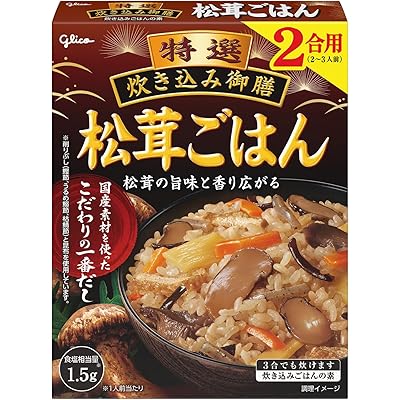 江崎グリコの「特選炊き込み御膳 松茸ごはん」は、一番だしと松茸の香りが特徴的な炊き込みご飯の素です。この商品の特徴は、だしと具材が別包装になっている点にあります。これにより、炊きあがりの色合いが鮮やかになるという工夫がされています。
