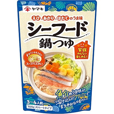 「ヤマキ シーフード鍋つゆ 700g ×4個」は、えび、あさり、ほたてといった魚介のうま味をしっかりと感じられるスープが特徴の商品です。パッケージに記載されている情報からも、まろやかな味わいに仕上がっていることがうかがえ、家庭で手軽に本格的なシーフード鍋を楽しみたい方にぴったりだと感じました。