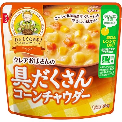 クレアおばさんの具だくさんコーンチャウダー 180g×10個 江崎グリコ (常温保存/非常食/備蓄/ローリングストック/レトルト/レンジ対応)