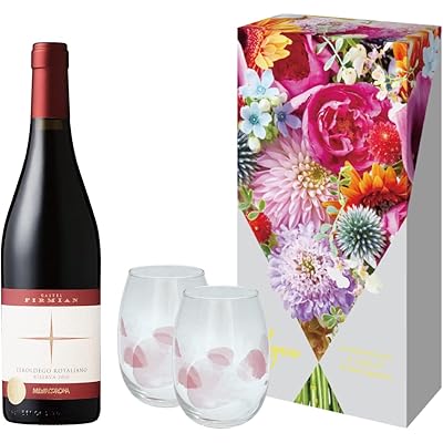 青山フラワーマーケットデザイン ペアグラス付ワイン ギフト メッツァコロナ カステル・フィルミャン テロルデゴ・ロタリアーノ リゼルヴァ [ 赤ワイン フルボデ …